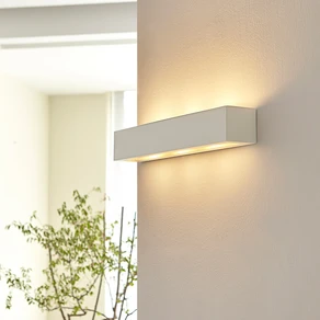 Aparte de las conexiones eléctricas para la pared, ¿no hay ninguna conexión en el techo? Entonces deberías elegir apliques de muy luminosos con una cifra elevada de lúmenes\ que puedan proporcionar una luminosidad básica. Los apliques de pared que iluminan hacia arriba y hacia abajo o hacia el conjunto de las paredes son ideales, ya que la luz se refleja y se emite en la habitación. Esto se denomina luz indirecta.