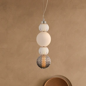 El amuleto Maytoni se inspira en los collares y pulseras de conchas. Se compone de elementos decorativos de cristal hechos a mano y una moderna tecnología de iluminación LED.