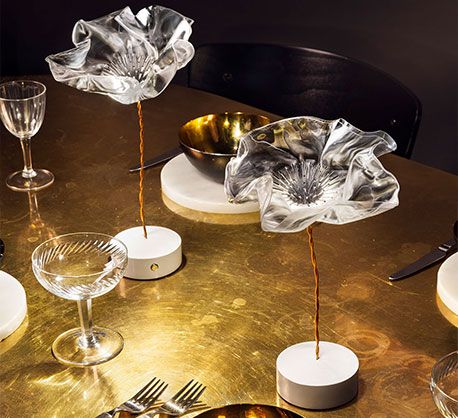 Accesorio exquisito: la pantalla de polímero transparente modelada a mano del Lafleur tiene forma de cáliz.