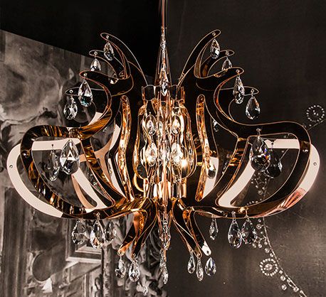 El clásico reinterpretado: Lillibet es una moderna lámpara de araña fabricada con Copperflex® brillante y 56 cristales Schöler de alta calidad.