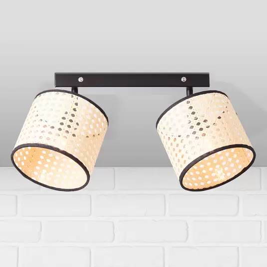 Foco de techo Wiley, 2 luces con ratán Tiempo de entrega: 8 - 12 días laborables