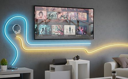 Una iluminación suave es especialmente importante en la zona del televisor para aliviar los ojos y evitar deslumbramientos. Las tiras LED indirectas detrás del televisor o la suave iluminación indirecta de la pared crean una agradable luminosidad de fondo que hace más cómoda la experiencia visual. Los pequeños focos o lámparas colocados específicamente proporcionan acentos luminosos sutiles adicionales. La luz blanco cálido con 2.700-3.300 Kelvin o un cambio de color dinámico son ideales para ver la televisión, ya que crean un ambiente relajado.