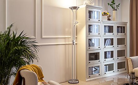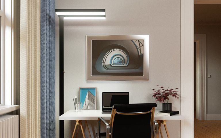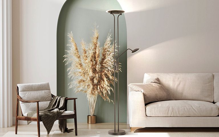 Zonas del salón como el sofá, el rincón de lectura, la mesa de comedor o un pequeño puesto de trabajo se benefician de luz adicional dirigida. Las lámparas de pie o las lámparas de lectura flexibles y los apliques de pared con brazo de lectura independiente son ideas de iluminación típicas que iluminan zonas individuales con sensatez y dan estructura al salón al mismo tiempo.