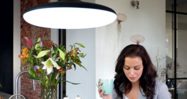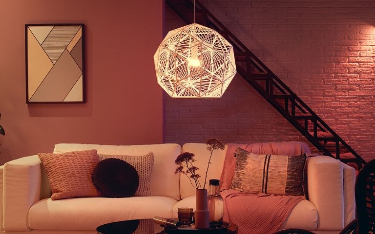 Una acogedora iluminación ambiental en el salón, el dormitorio o el comedor de unos 300 lux. Esto se consigue a menudo con iluminación de techo o colgante.