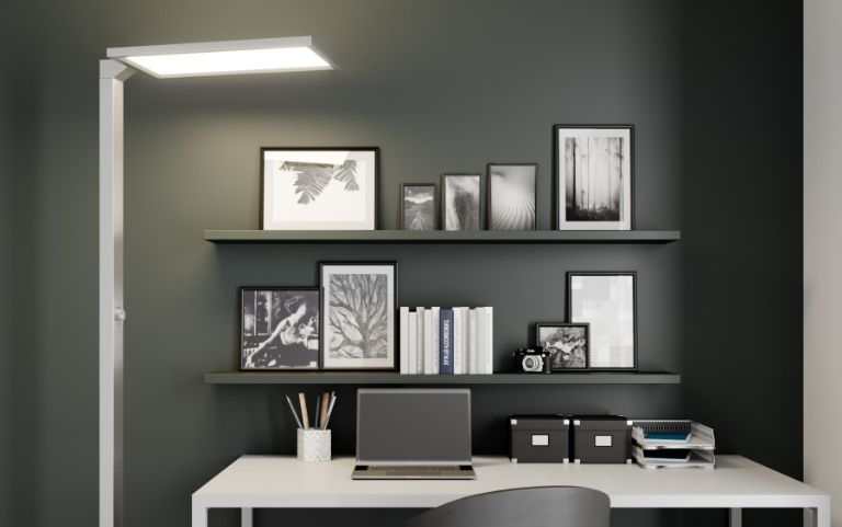 Se necesitan unos 500 - 1.000 lux en el escritorio. Las lámparas de pie con componente de luz directa o las lámparas de mesa son buenas opciones.