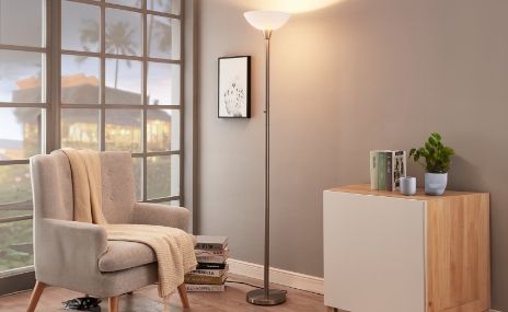 Lámpara de pie con componente de luz indirecta y directa.