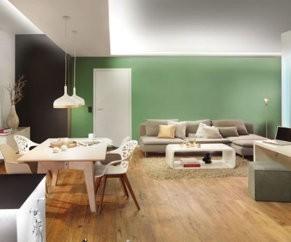 Además de las lámparas de techo indirectas, se utilizan tiras LED para crear luz indirecta en el salón. Un techo suspendido con tiras LED da un toque moderno al salón. También pueden pegarse detrás de zócalos o muebles para crear un suave anillo de luz de varios colores. En particular, las tiras LED inteligentes con función RGB, color de la luz modificable (ajuste de diferentes tonos de blanco, véase Kelvin) y brillo atenuable ofrecen una amplia gama de aplicaciones modernas. Como complemento, se recomiendan lámparas de pie de iluminación indirecta.