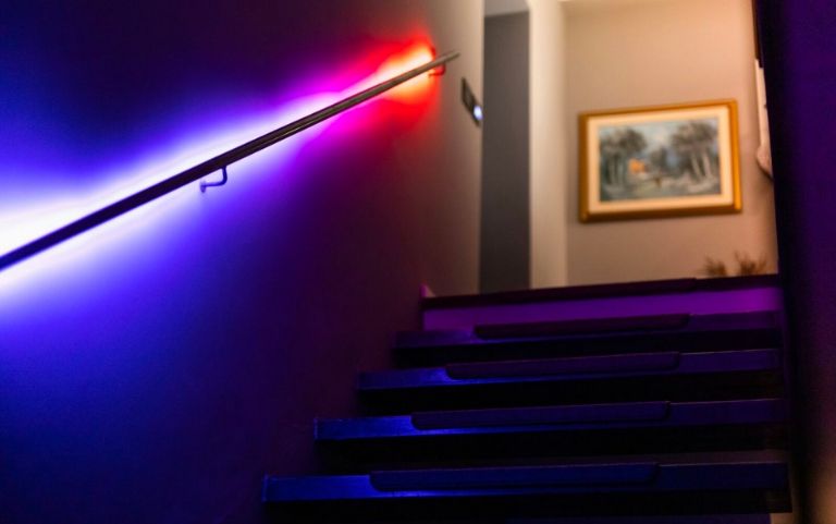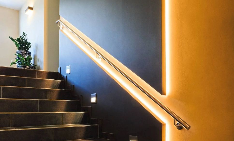 Las tiras LED garantizan la seguridad en pasillos y escaleras. La iluminación de los distintos pasos con tiras LED proporciona una visibilidad y orientación óptimas. ¡En términos de puesta en escena, son un verdadero Highlight! Los zócalos LED son ideales sobre todo para pasillos, ya que iluminan discretamente la estancia y proporcionan orientación al mismo tiempo. La iluminación pasiva en apliques de pared de luz indirecta ofrece la ventaja de que no se produce deslumbramiento, un criterio esencial para la iluminación de pasillos y escaleras.
