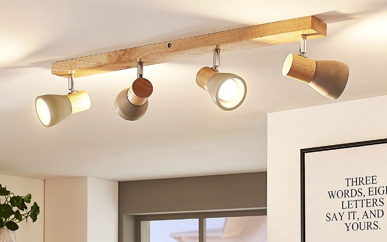 Los focos de techo de varias luces proporcionan una amplia iluminación ambiental a la habitación. Es importante alinear correctamente los focos para conseguir una iluminación uniforme.