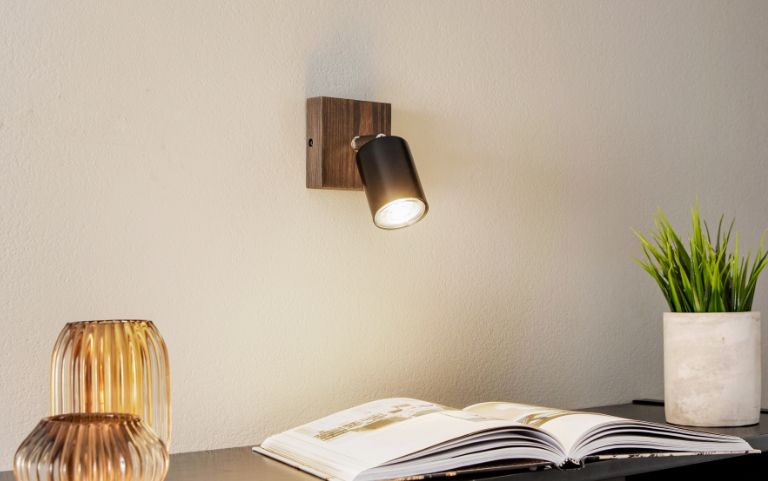 Los focos y reflectores individuales iluminan, por ejemplo, la mesilla de noche o la cómoda. La luz se dirige directamente a la zona que importa. Así también se pueden poner en escena objetos, por ejemplo, una figura decorativa.