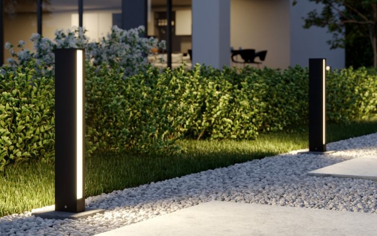Una aplicación clásica para la luz directa en zonas exteriores, es la iluminación de senderos. Los haces de luz se superponen, iluminando el camino de forma uniforme.