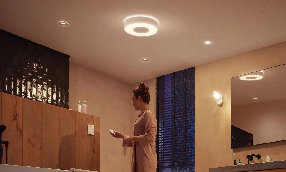 Una luz suave y sin deslumbramientos es especialmente importante para relajarse en el baño, por ejemplo. Por eso, las lámparas de techo para baño nunca brillan directamente, sino que no deslumbran gracias a un difusor. Los apliques de pared con luz indirecta también pueden contribuir a aumentar la sensación de bienestar en el cuarto de baño. Es importante tener en cuenta el correcto grado de protección IP en todo esto.