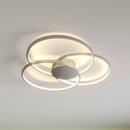 Riley, plafón LED atenuable mediante interruptor de pared con tres anillos de aluminio