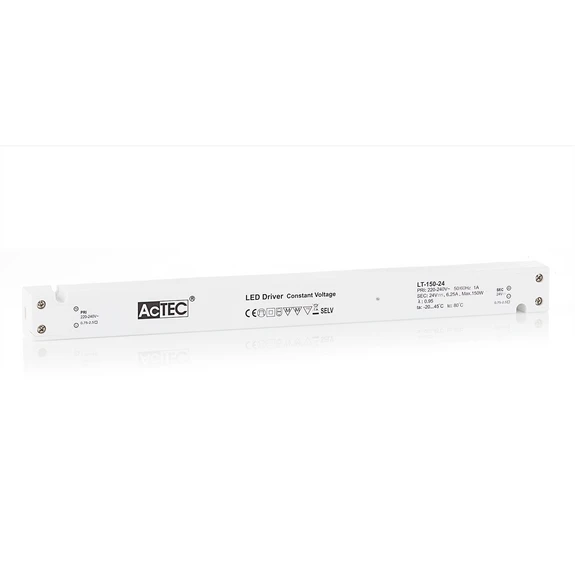 Driver LED de tensión constante LT 24V 150W, no regulable - diseño muy delgado - aislamiento SELV - IP20 - protección contra cortocircuito, circuito abierto, sobrecalentamiento y sobrecarga - 220-240V, 50-60Hz - carga mínima 0,5 W