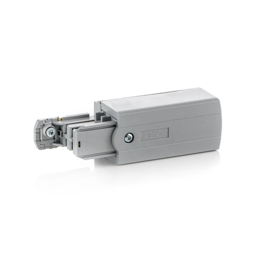 Alimentador de extremo derecho para riel trifásico Noa Este alimentador de extremo se utiliza como terminación óptica para los rieles del sistema de riel trifásico Noa. A través del alimentador se suministra corriente al carril y también sirve como pieza final de color a juego - Conductor de protección a la derecha