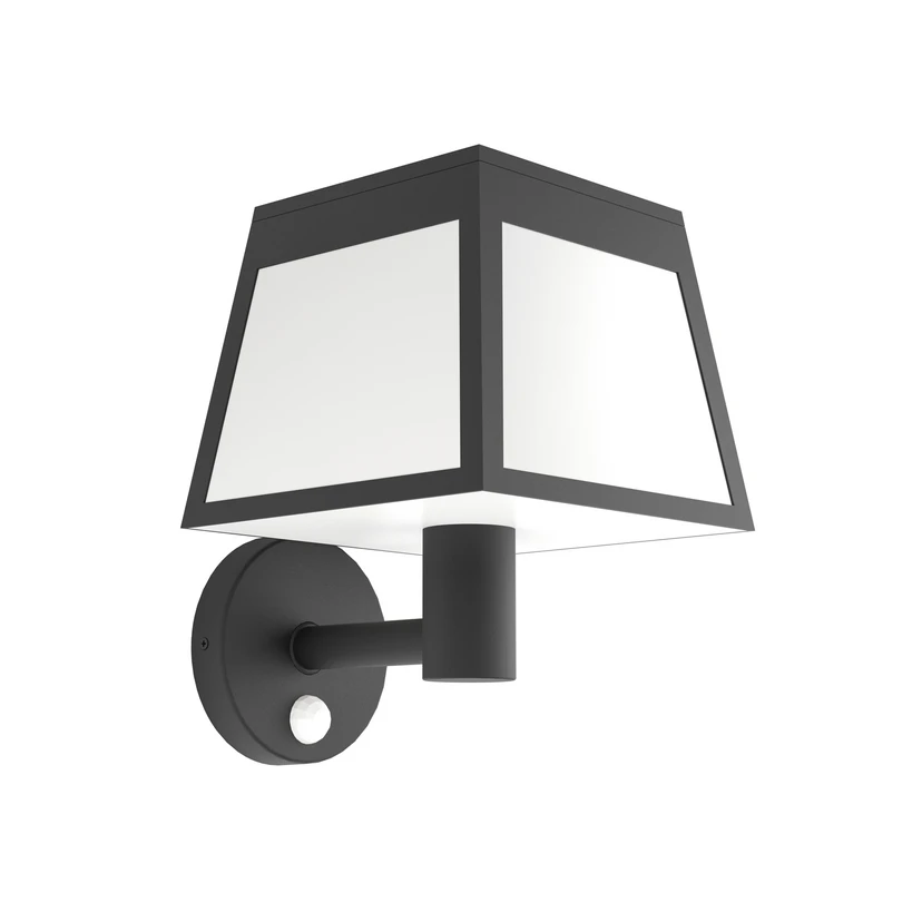 Concepto de iluminación con control por sensor: aplique de pared LED solar Altilia El aplique de pared LED solar Altilia combina un diseño moderno con una tecnología de iluminación inteligente. El aplique, acabado en plástico negro, se integra perfectamente en cualquier diseño de exterior y ofrece una solución de iluminación de bajo consumo gracias a su fuente de luz LED integrada. El sensor integrado garantiza la activación automática de la luz cuando se detecta movimiento, lo que no sólo proporciona comodidad, sino también seguridad en las zonas exteriores. Con su estilo moderno y el uso eficiente de la energía solar, el aplique de pared Altilia es un elemento destacado para cualquier fachada - Tiempo de iluminación con la batería completamente cargada: aprox. 6-8 horas - Batería de iones de litio de 2200 mAh integrada - Detector de movimiento: rango de detección 6 m, ángulo de detección: 120° - Altura de instalación: 2,5 m - Umbral de luminosidad ajustable: 100 % o 30 %
