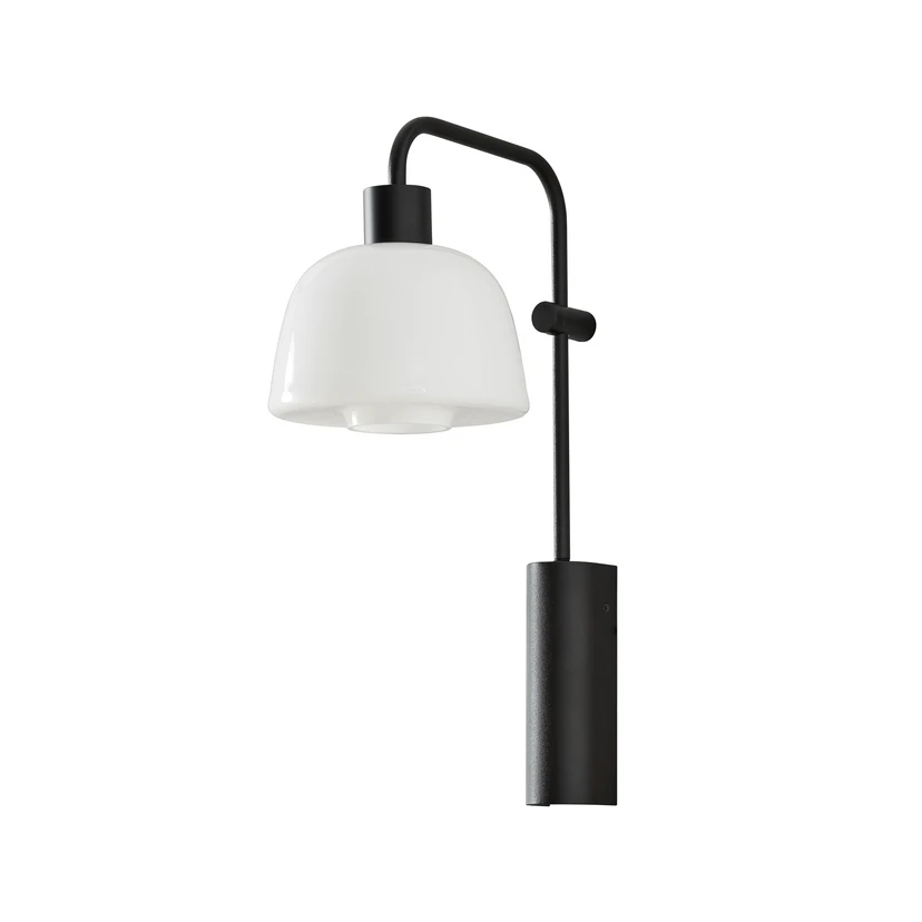 El aplique de pared LED Drep A/04 de Bover combina un diseño atemporal con una selección de materiales de alta calidad. Desde el marco negro mate de aluminio y hierro hay una suspensión con una pantalla opalina blanca de vidrio borosilicato de alta calidad que cae hacia abajo. La fuente de luz LED incorporada emite un color de luz blanco cálido y crea efectos luminosos en la pared y un ambiente acogedor en la habitación. Con un índice de rendimiento de color de 90 Ra, se consigue un efecto luminoso natural y vivo.