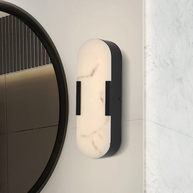 Aplique LED para baño Opaline combina un diseño elegante con una iluminación funcional. Equipada con una estructura de acero y una pantalla de resina sintética, esta lámpara no solo ofrece una construcción robusta, sino que también es un complemento estético para cualquier cuarto de baño. El color de la luz blanco cálido crea un ambiente agradable, relajante y acogedor. Gracias a la fuente de luz LED integrada, se garantiza una iluminación eficiente que reduce el consumo de energía y, al mismo tiempo, ofrece una larga vida útil.