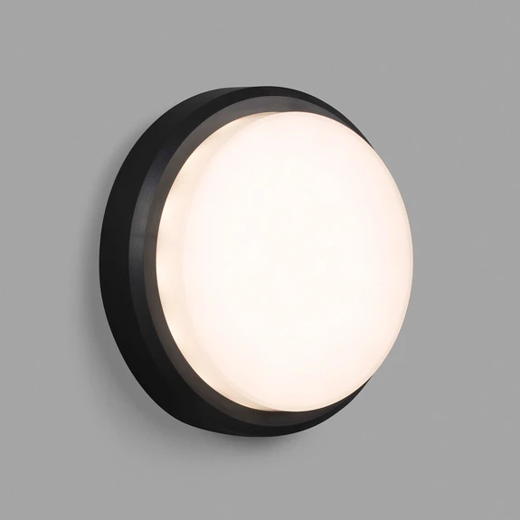 Aplique de exterior LED Tom XL - redondo y ROBUSTE Tom XL consta de un marco circular de plástico ABS. Incluye un difusor curvado hacia delante fabricado en policarbonato, cuyo material mate combinado con la luz blanco cálido de los LED Innes proporciona una iluminación uniforme. La baza especial del aplique de exterior LED es su resistencia a las influencias externas. Tom XL no sólo está perfectamente protegido contra el viento y la intemperie, sino también contra los impactos sólidos de acuerdo con la resistencia a los impactos IK10.
