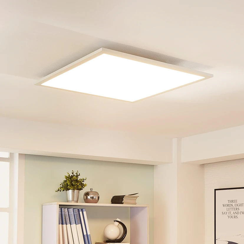 Esta lámpara de techo LED, con aspecto de panel, impresiona por su aspecto sencillo e intemporal y su gran funcionalidad.