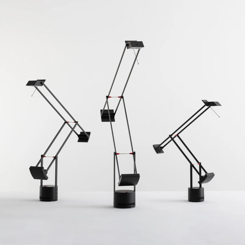Luminaria de sobremesa Tizio: una innovadora luminaria para el lugar de trabajoDiseñada en 1972, la luminaria de sobremesa Tizio no ha perdido ni un ápice de su atractivo y sigue siendo una luminaria muy popular para el escritorio. Richard Sapper, diseñador industrial alemán, creó la lámpara, que en aquella época fue una de las primeras lámparas con voltaje de baja tensión y con un transformador integrado en la base, de modo que no era necesario ningún cableado. Los brazos y el cabezal de la lámpara de sobremesa Tizio pueden ajustarse a cualquier posición mediante contrapesos, de modo que la lámpara no necesita muelles de tracción.En la oficina, en salas de trabajo privadas o en hoteles, la lámpara de sobremesa convence por su diseño clásico y premiado y por su flexibilidad. Se puede conmutar en dos etapas.