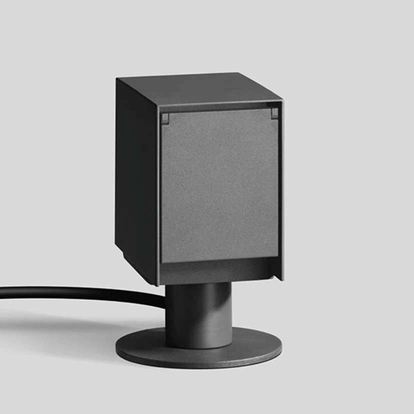 toma de corriente de 2 vías 10713 para el jardín - portátil gracias a la pica de tierra Esta toma de corriente para exteriores permite la conexión de dos enchufes para el funcionamiento de la iluminación exterior y otros dispositivos con una tensión de alimentación de 230 V. La toma de corriente y la pica de tierra están fabricadas en plástico reforzado con fibra de vidrio de color negro grafito neutro. Equipada con tapas protectoras y cable de clavija - Grado de protección IP44 - Máx. 16 A, 250 V