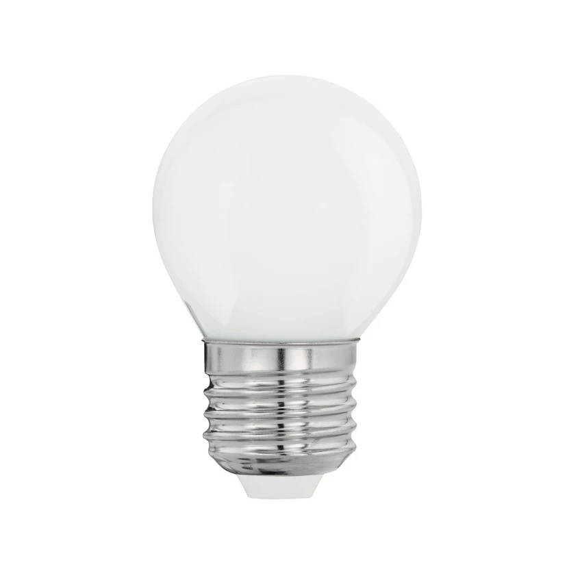 E27 Lámpara LED de 4 W en forma de miniglobo pequeño, ópalo Esta pequeña y decorativa bombilla LED encaja en cualquier pantalla, donde puede sustituir a una bombilla convencional de 40 W. También resulta muy decorativa en luminarias sin pantalla, donde su cristal opalino evita el deslumbramiento. Características/datos técnicos: - Pequeña forma de miniglobo G45 - Aspecto decorativo - Color de la luz blanco cálido (2.700 K) - No atenuable - Valor comparativo bombilla convencional: 40 W