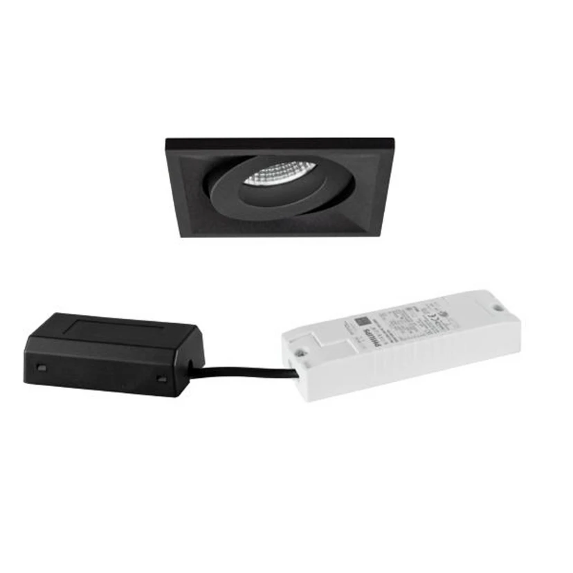 Foco empotrable cuadrado con controlador LED integrado BB36 es un foco empotrable para instalación en techo sin herramientas mediante muelles empotrables. El reflector es plateado y presenta una distribución luminosa profunda y simétrica. Óptima distribución de la luz gracias a la cubierta de policarbonato transparente - Temperatura ambiente admisible (ta): -20 °C - 25 °C - Con balasto electrónico, regulable DALI