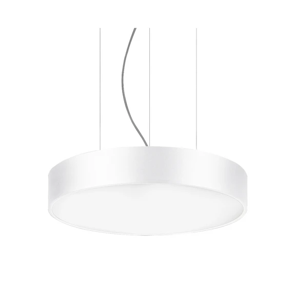Biro Circle Lámpara colgante LED con balastro DALI Biro Circle es una lámpara colgante LED redonda con una pantalla plana de aluminio que se cierra en la parte inferior con una cubierta de plástico blanco opal. La suspensión de la luminaria sobre tres cables de acero puede acortarse, lo que confiere a la pantalla un aspecto ligero, casi flotante - con distribución de la luz rotacionalmente simétrica y de gran amplitud - índice de rendimiento de color general CRI > 80 - vida útil L70/B50 a 25 °C: 50.000 h, vida útil L80/B50 a 25 °C: 50.000 h - material de la carcasa: aluminio / acero / plástico - temperatura ambiente admisible (ta): -20 °C - +25 °C - con balastro electrónico, DALI atenuable