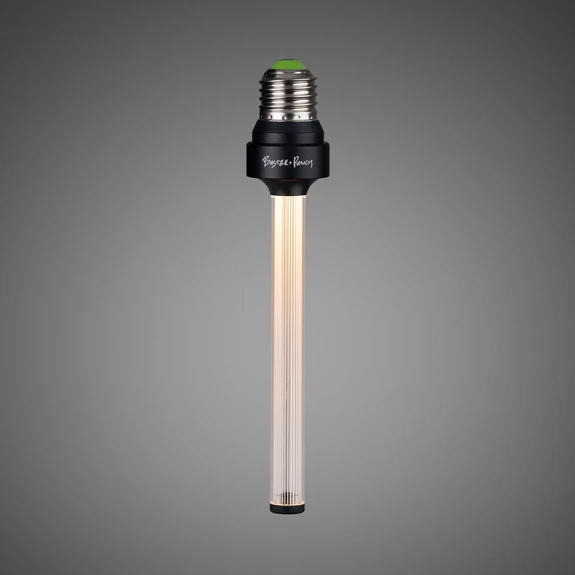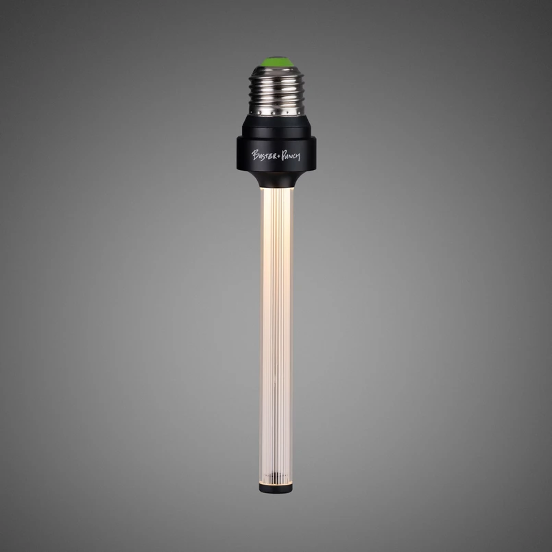 Lámpara LED E27 5W en forma tubular larga de Buster + Punch Una fuente de luz especial para luminarias abiertas o pantallas grandes en las que la fuente de luz puede verse desde el exterior: así es esta bombilla LED con casquillo E27 en forma tubular larga. Los LED se han dispuesto como un filamento en la larga bombilla de material estriado y transparente, creando un aspecto muy especial - Color de la luz blanco cálido (2.700 K) - Atenuable con un atenuador adecuado para bombillas LED