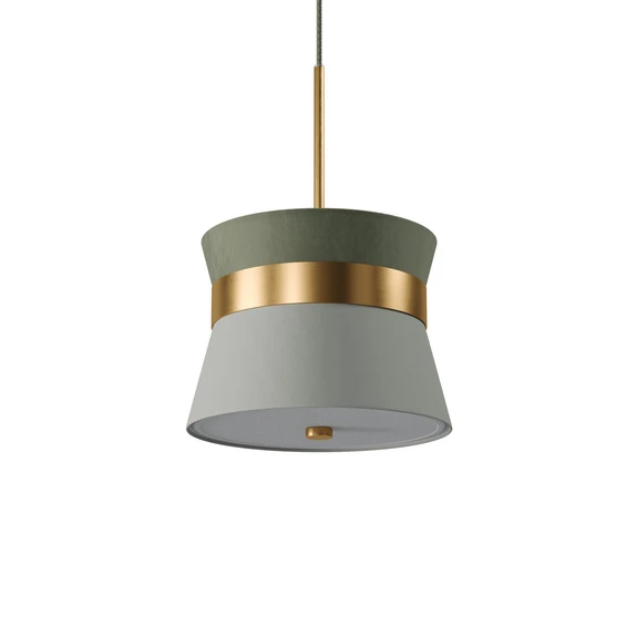 Pantalla textil tono sobre tono: Lámpara colgante CarameloUna armoniosa combinación de colores tono sobre tono domina el diseño de la lámpara colgante Caramelo. La pantalla textil está dividida en dos partes en cuanto a color y aspecto y está cerrada en la parte inferior por un difusor de plástico para que la luz se emita sin deslumbrar al entorno. Se puede utilizar una lámpara E27, regulable o no regulable y en el color de luz blanca deseado. Las lámparas de diseño de Carpyen se diseñan y fabrican en España. La marca representa un diseño inspirado en el ambiente mediterráneo de Barcelona, sede de la empresa Carpyen.