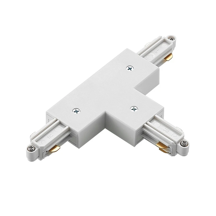 Conector en T de color blanco para el sistema de riel monofásico Linaro Este conector en T de color blanco es ideal como ampliación de un sistema de riel monofásico y para conectar rieles coincidentes.