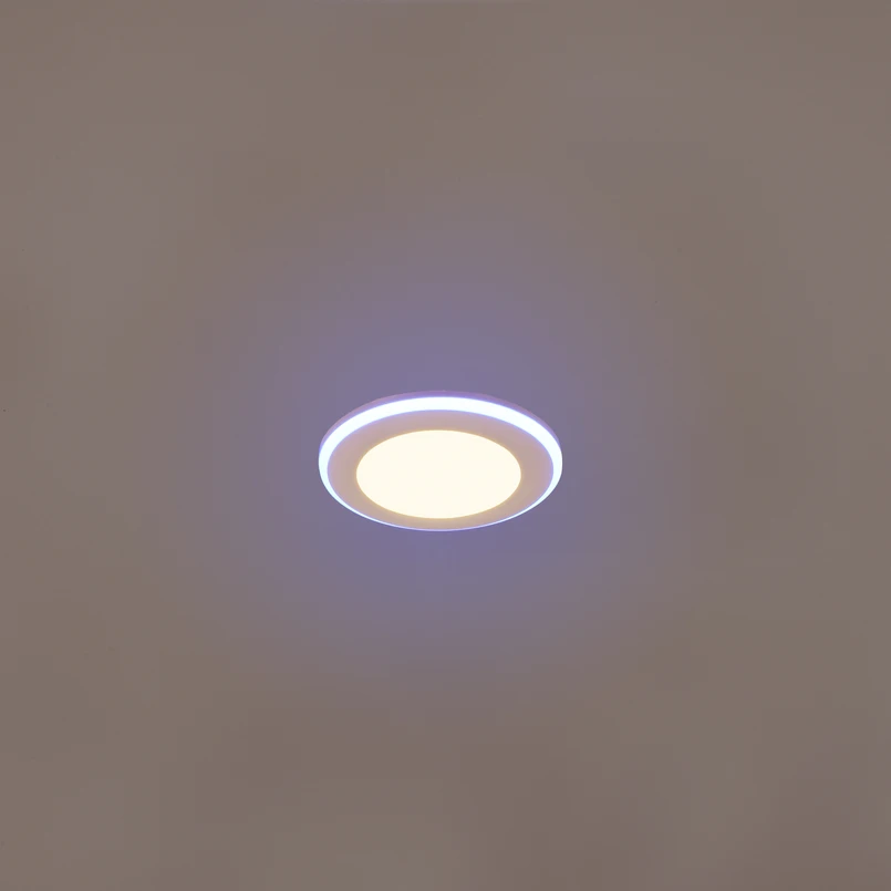 Luminaria LED redonda para empotrar en el techo Argus, color de la luz y luminosidad controlables por mando a distancia La luminaria LED para empotrar en el techo Argus, fabricada en plástico, ofrece una fuente de luz principal de color blanco cálido y un anillo integrado lateralmente con LED adicionales que pueden encenderse por separado y brillar en diferentes tonos de color. El encendido, la selección del color de la luz y la regulación se realizan con el mando a distancia incluido (incl. 1 pila CR2025). Éste también ofrece cuatro escenas de luz preconfiguradas.