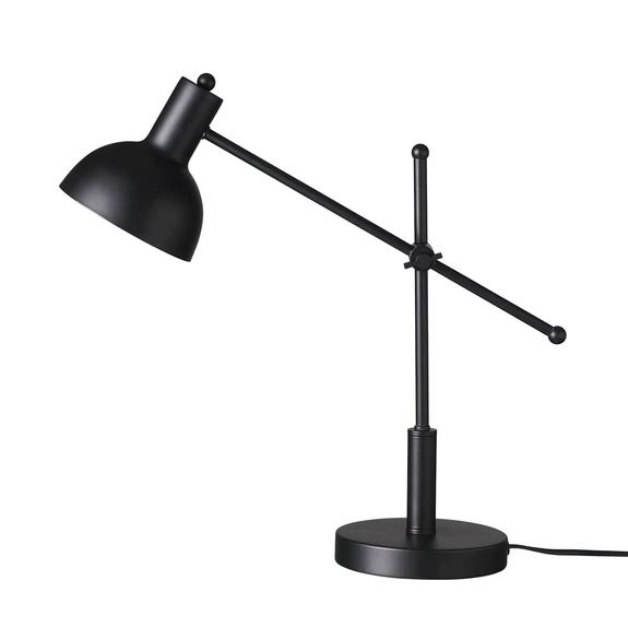 La lámpara de sobremesa London, de metal negro, proporciona una buena iluminación de la zona deseada, ya sea en el despacho de casa, en el escritorio, o en el salón, para leer o hacer labores de aguja. La lámpara, fabricada íntegramente en metal y con un acabado lacado en negro mate, está equipada con un brazo de dos partes con una articulación, a través de la cual se puede ajustar la pantalla según sea necesario.