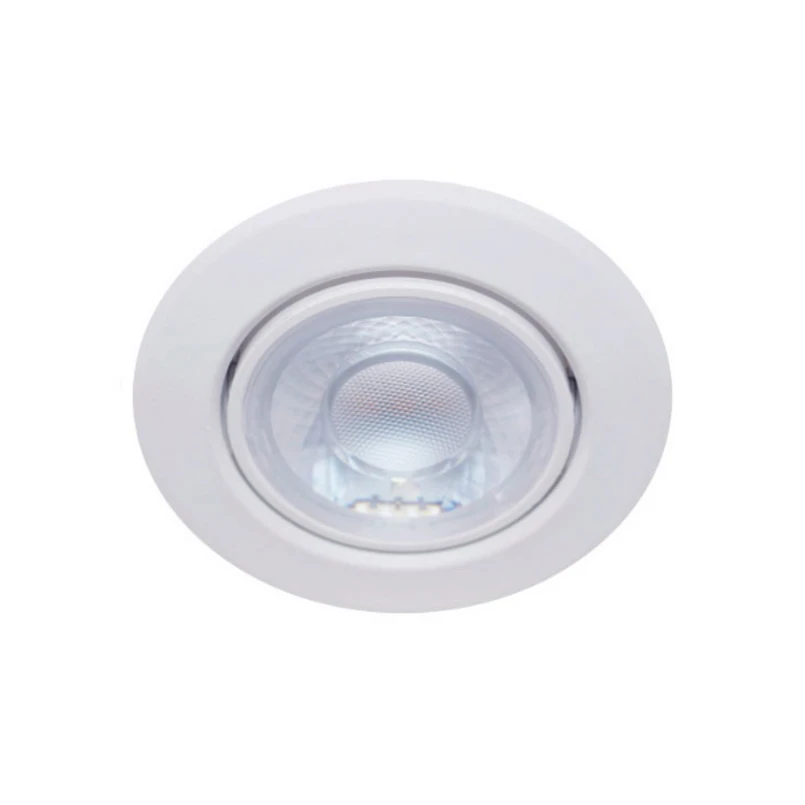 Foco empotrable LED Dekto en blanco, orientable El foco empotrable LED Dekto, redondo y blanco, puede instalarse en muchas habitaciones, incluidas las húmedas, ya que está protegido contra la humedad con un grado de protección IP44. El foco es orientable en la carcasa y emite luz en un ángulo de 38°. El foco empotrable LED Dekto, duradero y altamente resistente a los interruptores, se caracteriza por una muy buena calidad de luz con un índice de rendimiento de color de Ra90.