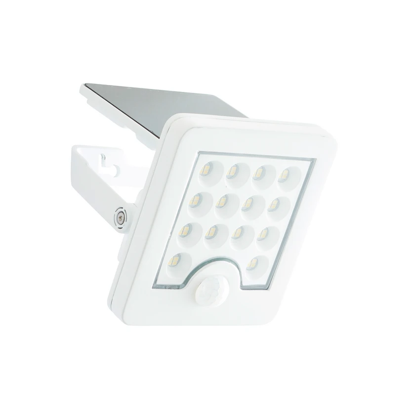 Aplique de exterior LED Luton en blanco con cabezal orientable El funcional aplique de exterior LED Luton alimentado por energía solar es la solución ideal para una iluminación exterior eficiente El foco con soporte de montaje está acabado en blanco y tanto el foco como el panel solar pueden girar 90° para que la iluminación quede perfectamente alineada y el panel solar óptimamente colocado. El foco de pared para exteriores aprovecha eficazmente la energía solar, la convierte en electricidad y funciona de forma ecológica y eficiente, independientemente de las fuentes de alimentación convencionales. El detector de movimiento integrado ofrece tres opciones de ajuste diferentes para una iluminación óptima. El foco IP65 es resistente al polvo y está protegido contra fuertes chorros de agua: una iluminación fiable, incluso en condiciones meteorológicas adversas.