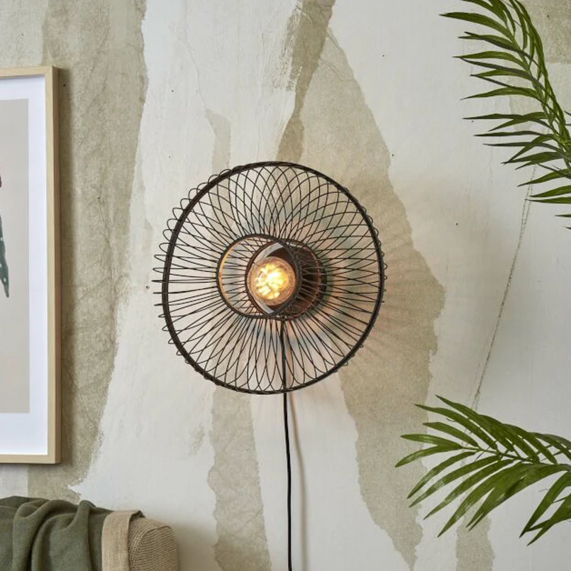 Aplique redondo Hokkaido de bambú con cableCon el aplique Hokkaido, se traslada a sus cuatro paredes un elemento de iluminación especial, que además aporta un toque natural con su pantalla de bambú. La pantalla de filigrana y diseño abierto crea bellos efectos de luces y sombras en el salón, en el pasillo o en el dormitorio. Gracias al enchufe, Hokkaido puede conectarse fácilmente a una toma de corriente sin tener que preocuparse por la instalación. El interruptor permite encender y apagar la lámpara cómodamente. La lámpara de pared también es un producto respetuoso con el medio ambiente, ya que está fabricada con bambú, un material sostenible y rápidamente renovable. Acerca de Good & Mojo:- marca sostenible y social- gran parte de la iluminación está hecha a mano por artesanos de pequeñas comunidades de Vietnam- materiales sostenibles fabricados con plantas que abundan en el sudeste asiático- por cada lámpara vendida, la Fundación WakaWaka recibe una donación, y también se planta un árbol a través de los Proyectos de Reforestación del Edén