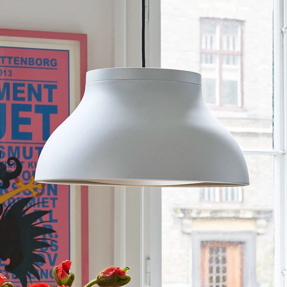 Como todas las obras de Pierre Charpin, la lámpara colgante PC se caracteriza por sus formas sencillas en combinación con los colores, un aspecto constante en la obra del diseñador, que vive y trabaja en París. Desde principios de los años 90, Charpin se ha dedicado al diseño de muebles y objetos. Su investigación sobre la forma y el color caracteriza su obra y es reconocible en todos sus productos.