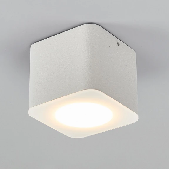 El foco de techo LED tiene un aspecto sencillo de cristal. La forma angular de 6,5 x 6,5 cm de la toma de aluminio lleva la fuente de luz LED de 8 W de bajo consumo. Un armonioso juego de materiales y diseño que, gracias al grado de protección IP44, no sólo es apto para su uso en espacios húmedos, sino también para otras estancias.