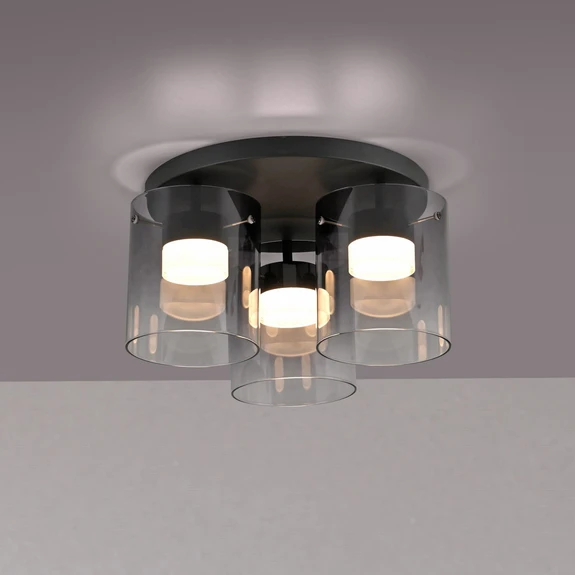 JUST LIGHT. Lámpara LED de techo Elio, cristal ahumado, 3 luces, negro