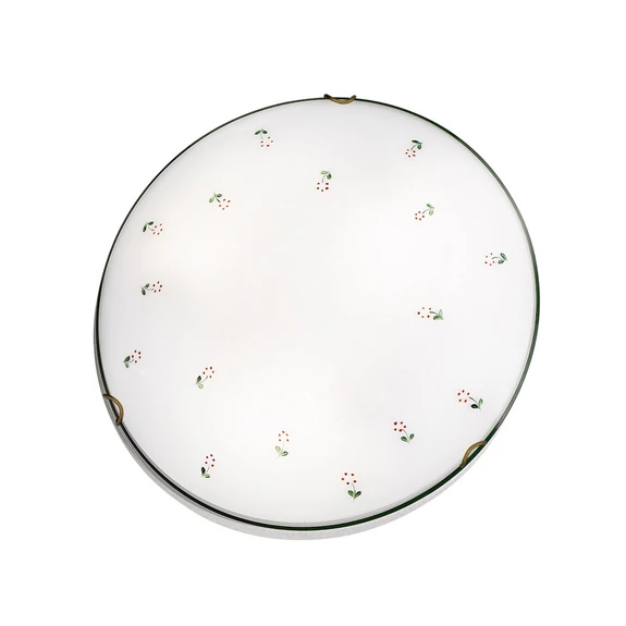 Lámpara de techo Nonna de cristal con motivos florales dispersos Hogar, dulce hogar: lámparas de araña, luces y piezas decorativas a juego en un encantador estilo de casa de campo aportan bienestar, calidez y un romántico aire vintage al hogar. El aspecto nostálgico del plafón Nonna crea un ambiente acogedor. Con detalle de color latón en el centro del cristal - Atenuable externamente