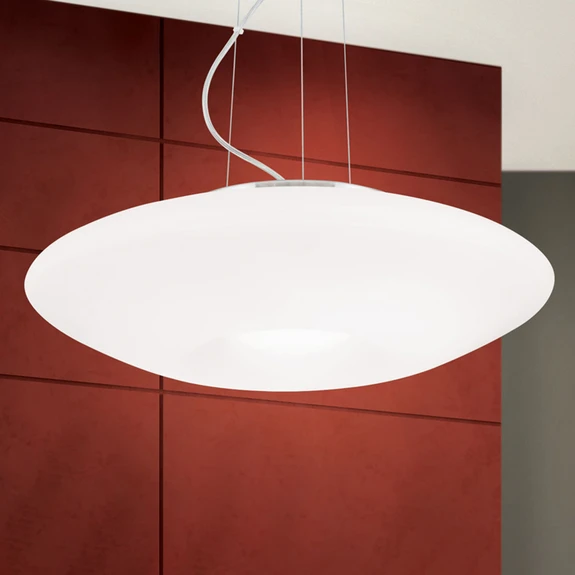 Un punto culminante para cada habitación: luz para sentirse bien con la lámpara colgante BlancLa lámpara colgante Blanc impresiona por el diseño atemporal de la pantalla redonda y convexa de cristal opalino. Se complementa con modernos detalles en níquel mate. El cristal opalino difunde uniformemente la luz de las bombillas utilizadas, de modo que la luminaria colgante Blanc proporciona una generosa iluminación general.