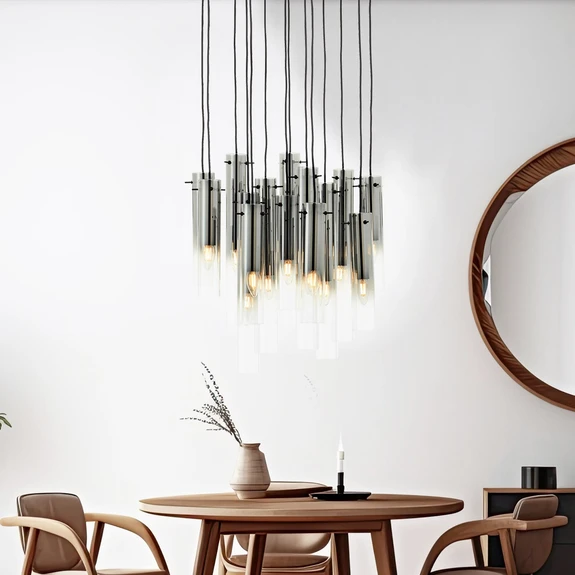 Lámpara colgante Glasini, Ø 52 cm, gris humo, 14 luces, cristal