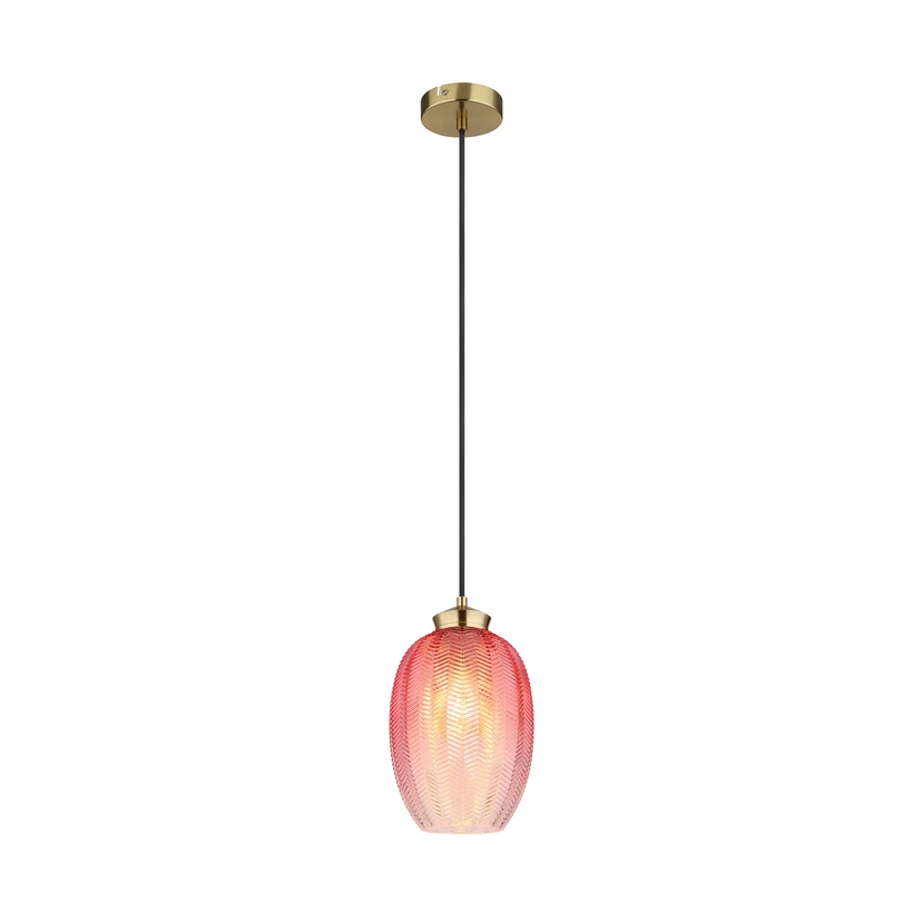 La lámpara colgante Jessica combina un diseño elegante con una selección de materiales de alta calidad. Fabricada en vidrio y metal, se presenta en un atractivo tono rojo mora con detalles dorados. Esta combinación le da a cada habitación un toque especial y crea un ambiente armonioso. La lámpara es un HighLight visual.