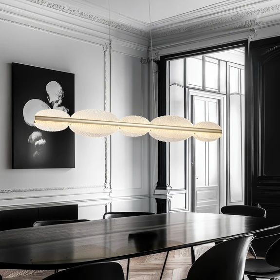 Diseñada especialmente para salones y comedores, esta lámpara colgante aporta toques de estilo y complementa tanto los conceptos de interiorismo modernos como los clásicos. Los LED integrados garantizan una vida útil prolongada y un mantenimiento mínimo, mientras que su diseño bien pensado baña la estancia en una luz armoniosa.