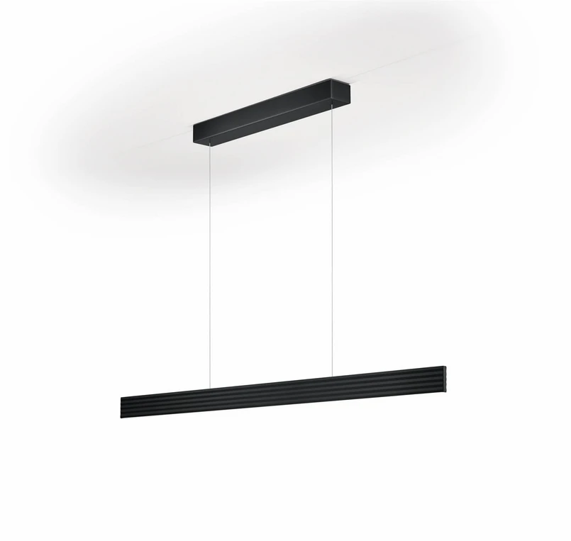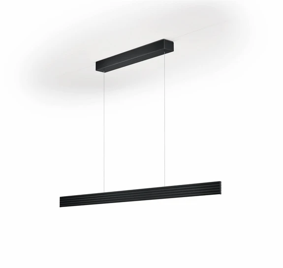 La luminaria colgante Fara LED es una fuente de luz funcional y contemporánea que convence para salones y salas de estar modernas. Un delgado perfil rectangular forma el cuerpo de la luminaria. La luz se emite hacia arriba y hacia abajo, mediante LEDs independientes que pueden controlarse por separado. Su luz ofrece una reproducción cromática especialmente buena (CRI 90), puede atenuarse y regularse desde el blanco cálido hasta una temperatura de color especialmente acogedora (Dynamic White). La marquesina es del mismo color que la luminaria, y hay dos cables delgados para la suspensión.