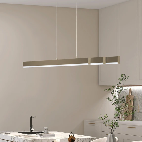 La lámpara colgante LED Vayana combina funcionalidad y diseño en una carcasa metálica de alta calidad en color marrón grisáceo. Con la función CCT integrada, el color de la luz se puede ajustar de forma continua desde blanco cálido hasta luz diurna, lo que permite adaptarla de forma óptima a diferentes necesidades. Los LED integrados proporcionan una iluminación eficiente desde el punto de vista energético y una distribución uniforme de la luz.