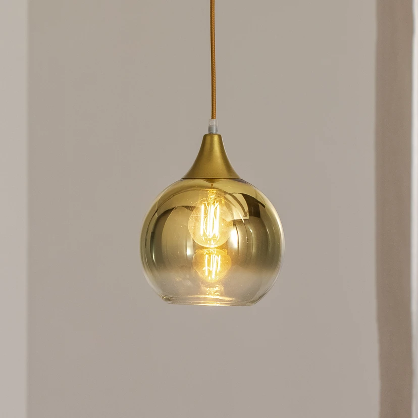 La lámpara colgante Monte de cristal combina un diseño moderno con materiales de alta calidad como el cristal, el metal y el plástico. Su color gris humo y dorado aporta un toque elegante a cualquier estancia, mientras que su diseño de 1 luz proporciona una iluminación específica y acogedora. Esta lámpara es ideal para salones, comedores y cocinas, y es un complemento elegante para cualquier decoración moderna.