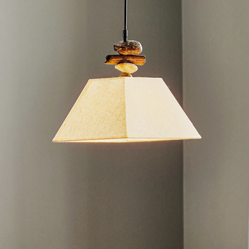 Lámpara colgante Seregon con pantalla textil y decoración de piedra