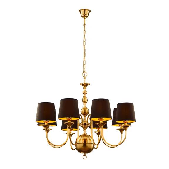 Lámpara de araña Baranio, color latón/negro, Ø 100 cm, 8 luces.